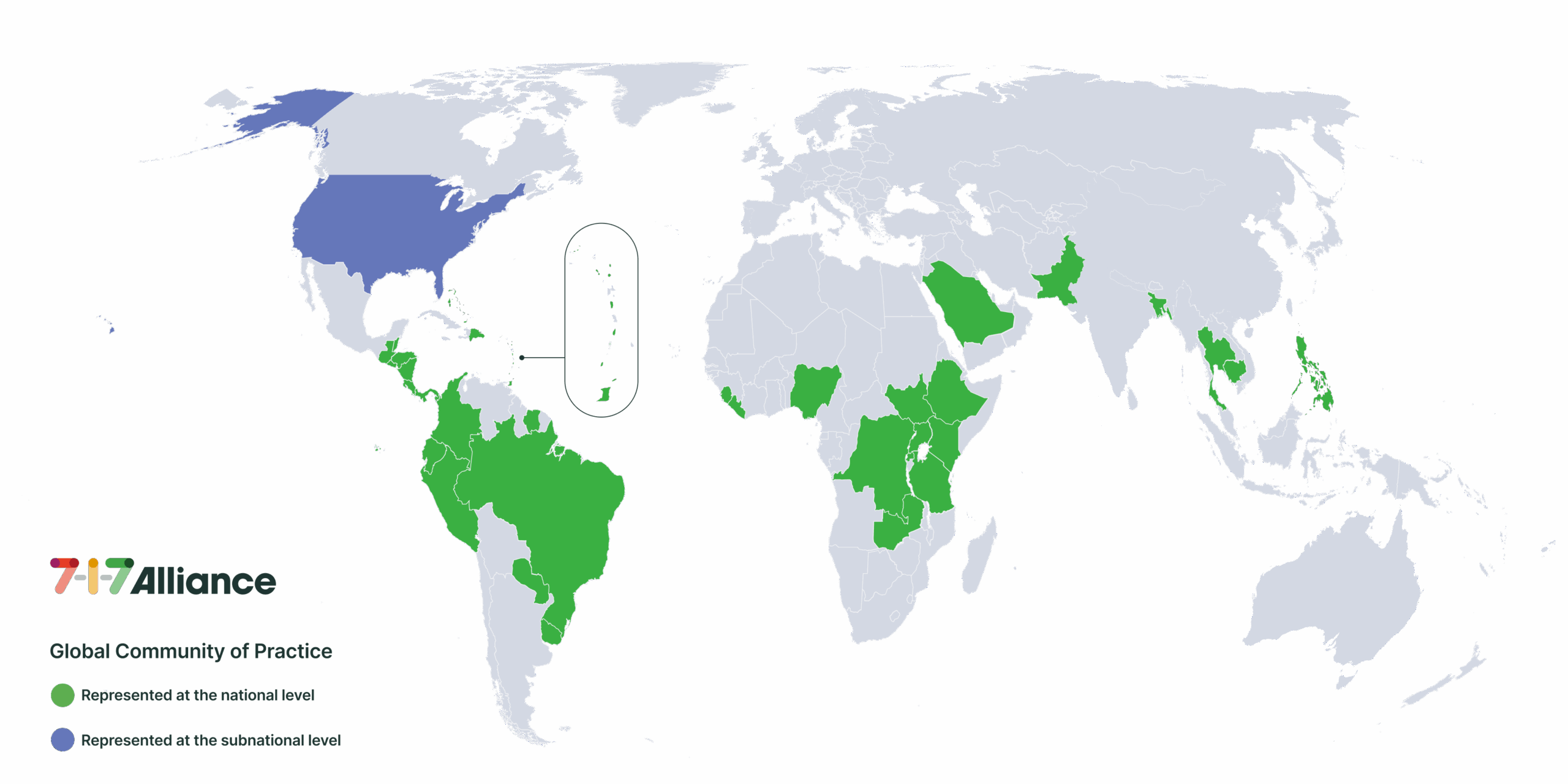 The 7-1-7 Global Community of Practice hosted by the 7-1-7 Alliance is made up of 40+ countries (and growing), all at different stages of adoption and use of the 7-1-7 target.