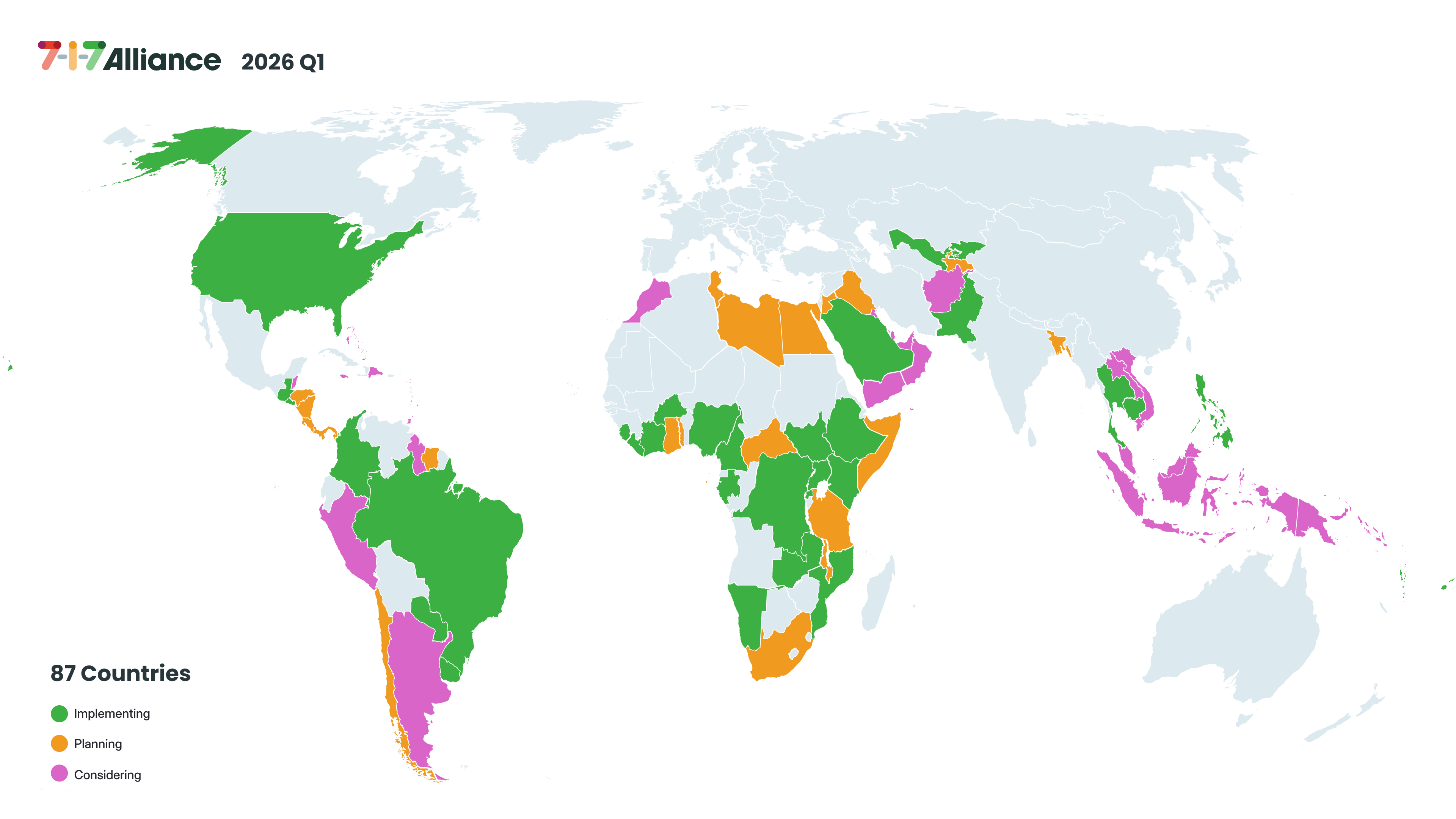 Countries engaged with the 7-1-7 Alliance