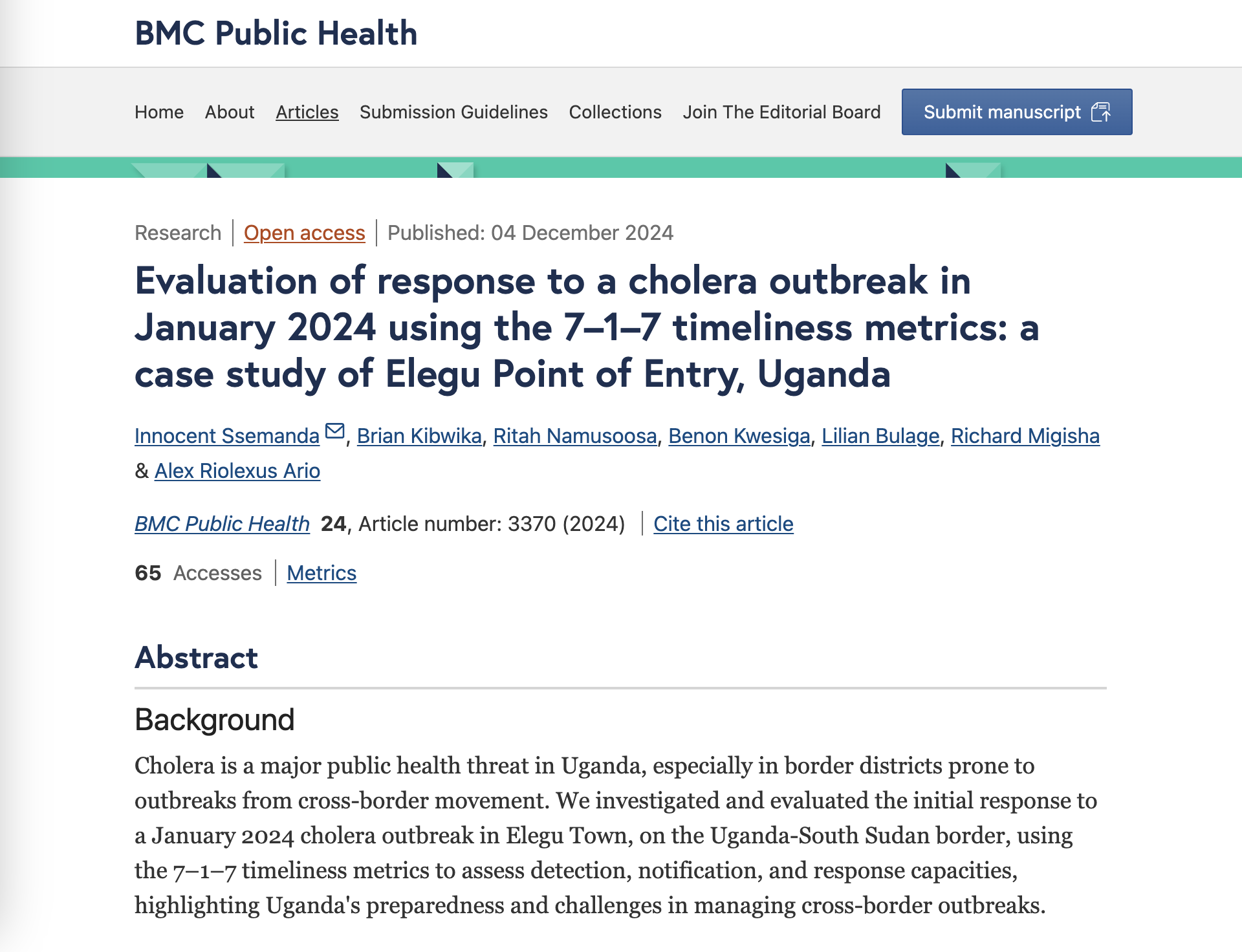 BMC Public Health article published in December 2024 authored by the Uganda National Institute of Public Health.