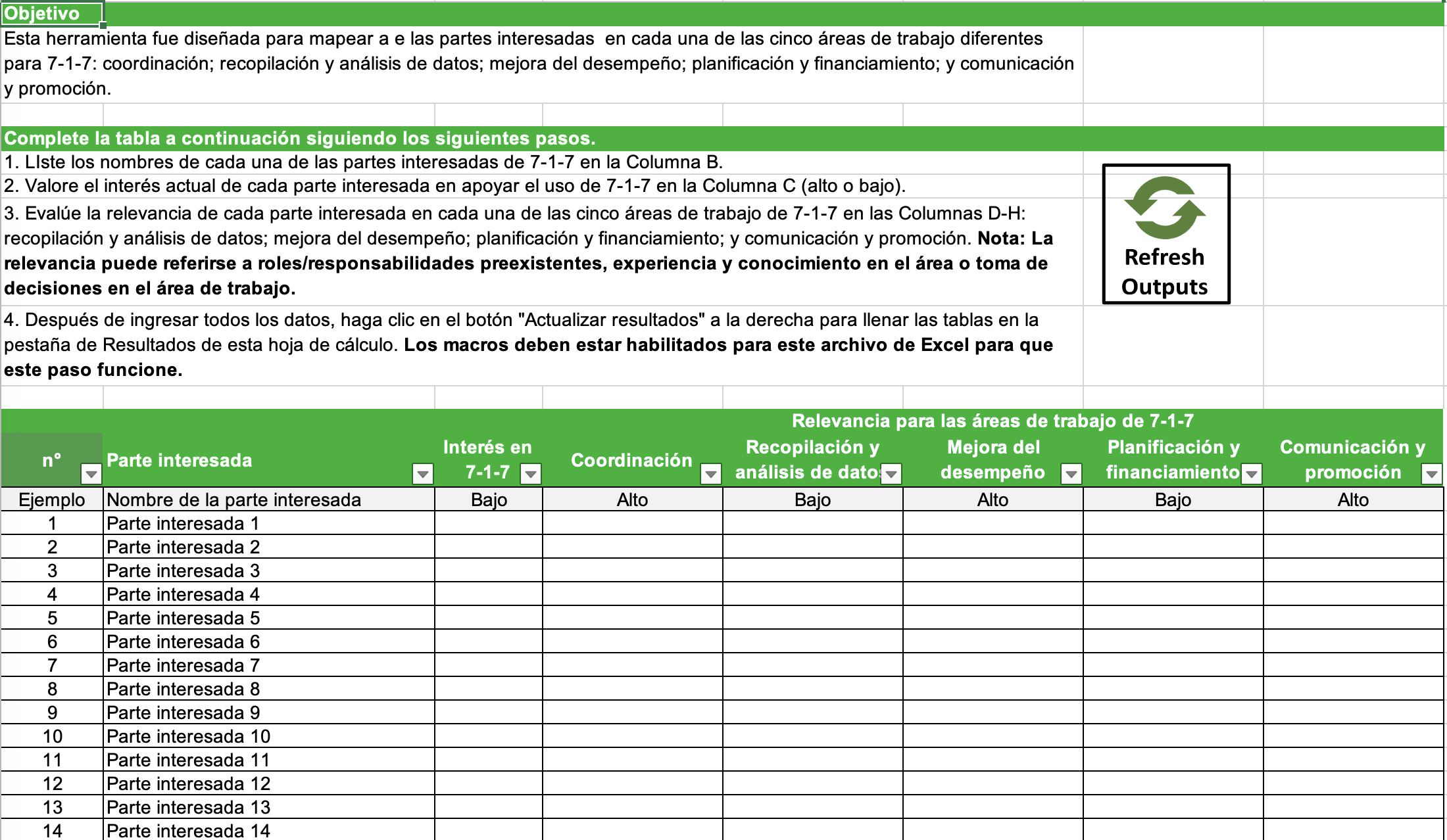 El equipo de coordinación de 7-1-7 puede luego utilizar este mapeo de partes interesadas como base para sus planes de participación de las partes interesadas.