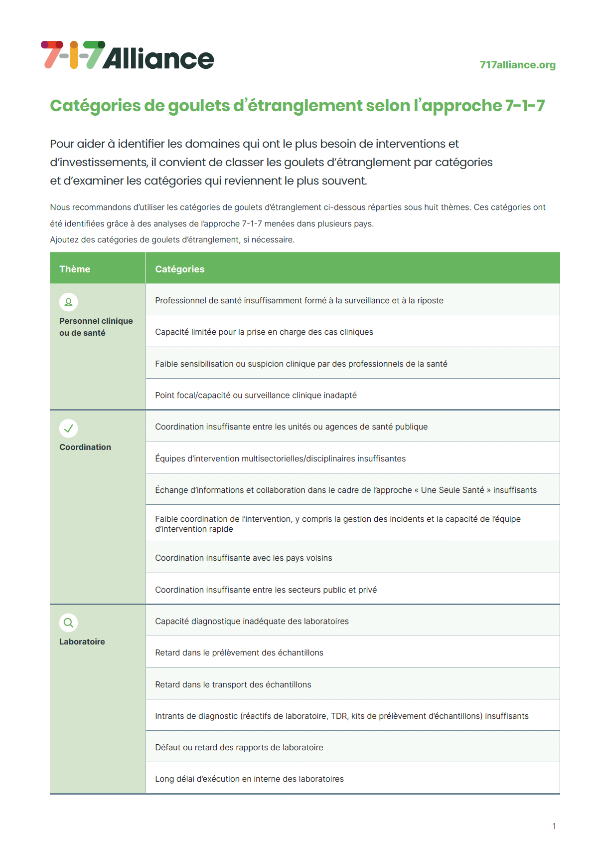 Catégories de goulets d’étranglement courants identifiées grâce à l’utilisation de la cible 7-1-7. Liste non exhaustive.