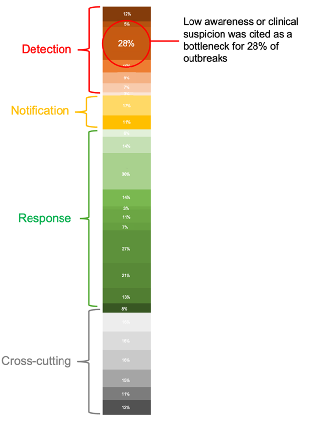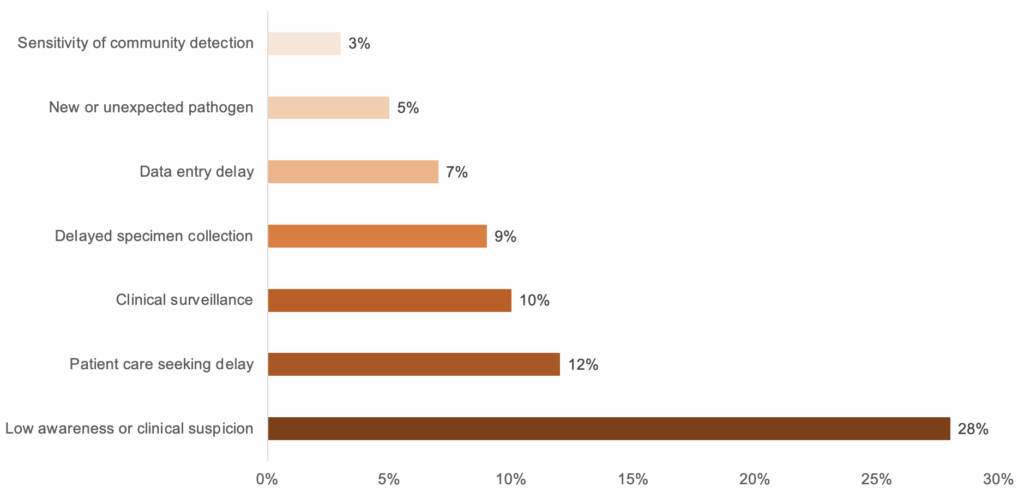 In our analysis, low clinical suspicion—health care workers failing to suspect an outbreak of disease—was the most common bottleneck to detection, cited in nearly one in three outbreaks (28%).