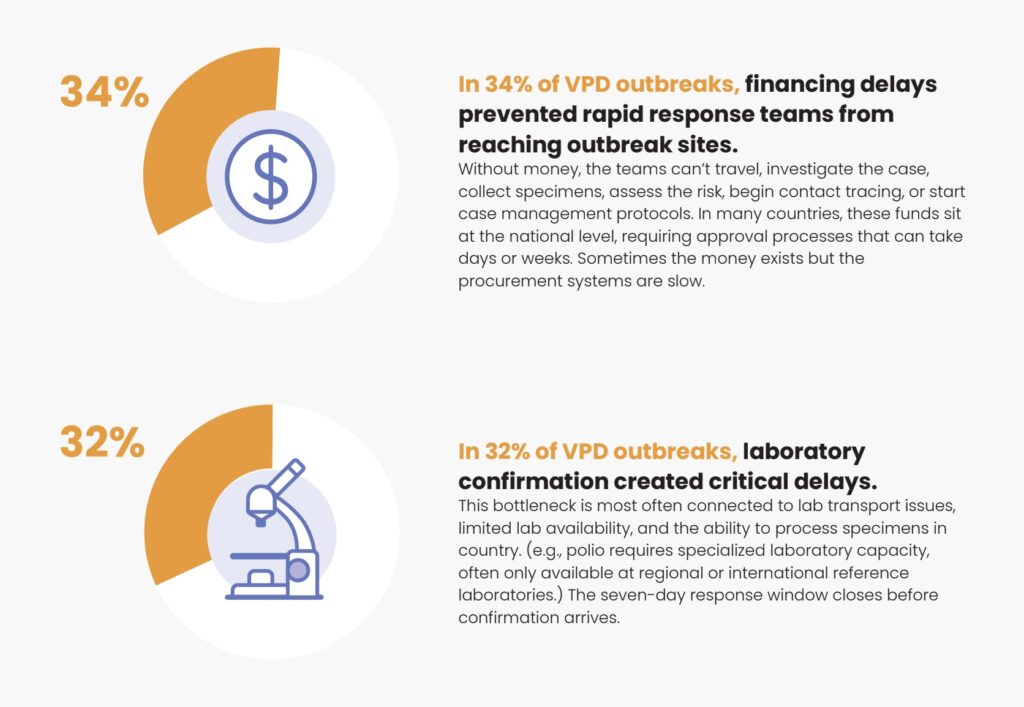 Surprisingly, even countries with a strong track record of containing novel pathogens or rare diseases struggle with VPD outbreaks, even though we have proven interventions ready to deploy. 7-1-7 data from 12 countries reveal that VPDs consistently face longer response delays than any other outbreak category. And these delays are costing lives.