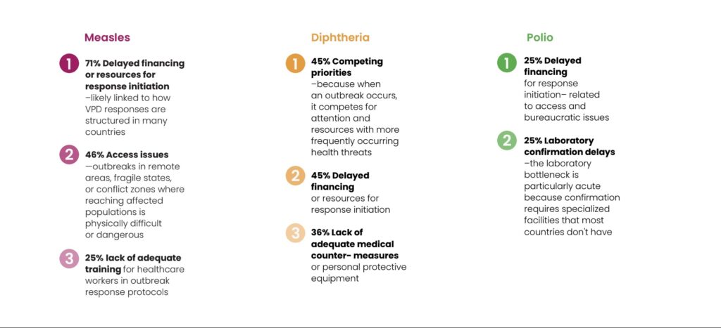 VPD outbreaks should be the easiest to control with safe, effective vaccines and decades of experience managing these diseases. By addressing the response gap, we can save lives during outbreaks, reduce case numbers and outbreak duration, make better use of existing vaccines and resources, and build stronger, faster systems that work not just for VPDs but for all outbreak types.